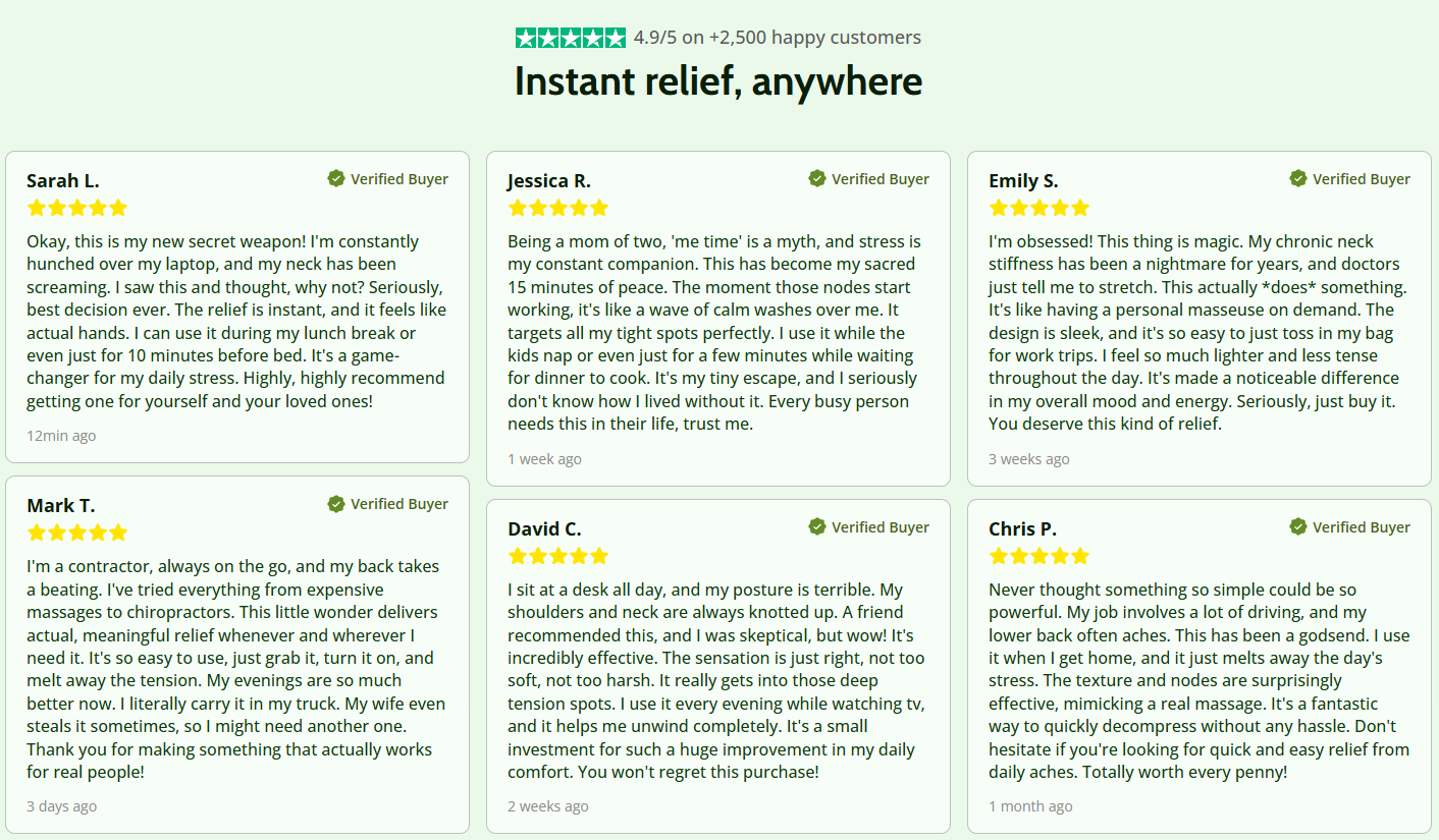 🧘♀️ Ergonomic Design for Full Body Use: Its versatile U-shape isn’t just for your neck and shoulders. Use it to relieve pain and fatigue on your back, lumbar region, thighs, calves, and arms .